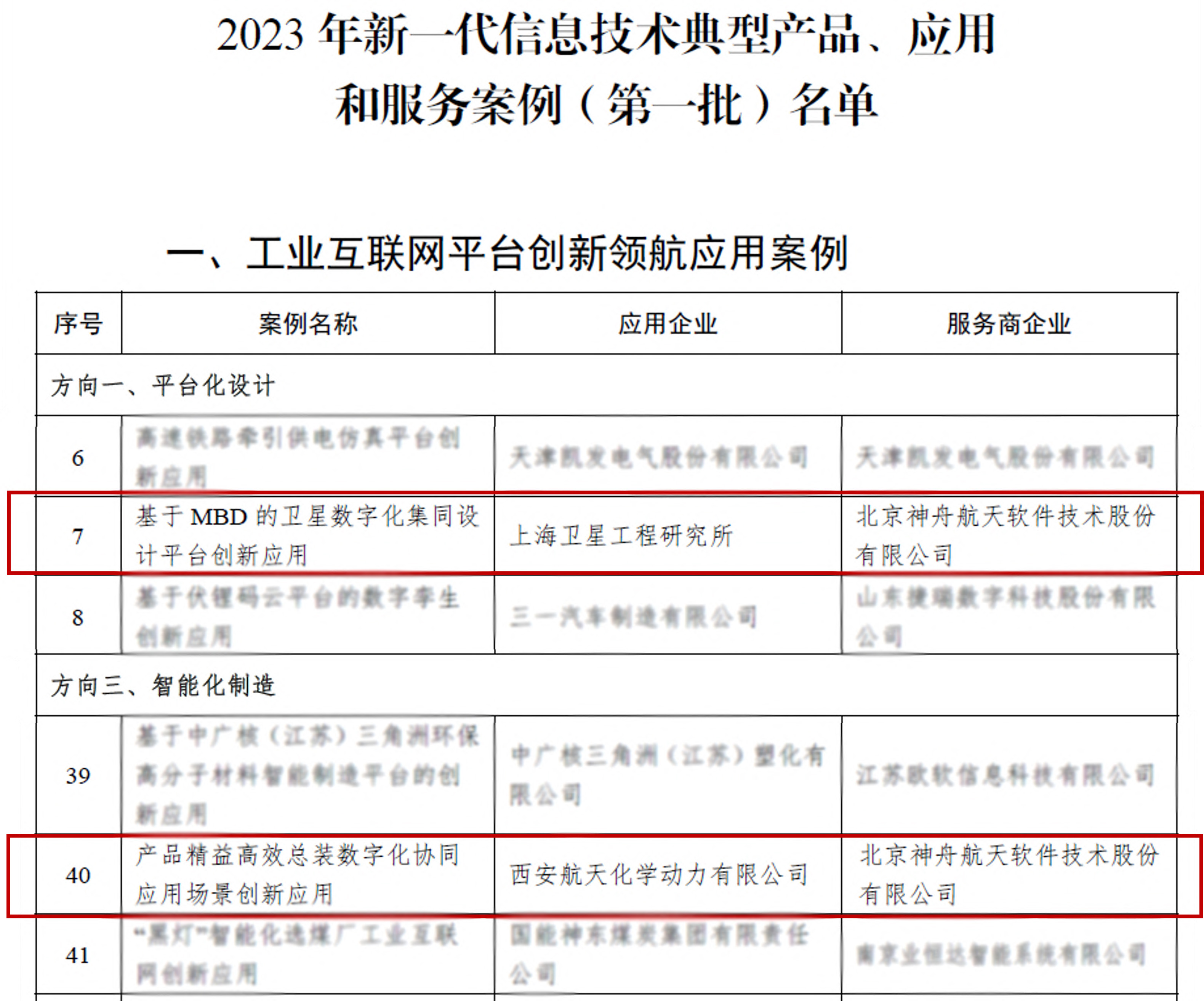 工業(yè)和信息化部為了讓更多地方和企業(yè)應(yīng)用新一代信息技術(shù),推動(dòng)高質(zhì)量發(fā)展提供路徑參考,促進(jìn)制造業(yè)高端化、智能化、綠色化發(fā)展,加快推動(dòng)新型工業(yè)化,以新一代信息技術(shù)與制造業(yè)融合發(fā)展為主題,圍繞典型產(chǎn)品、典型應(yīng)用、典型服務(wù)模式等方向,遴選出一批優(yōu)秀典型案例,并于近期公布了2023年新一代信息技術(shù)典型產(chǎn)品、應(yīng)用和服務(wù)案例(第一批)名單,由神軟公司提供服務(wù)支撐,上海衛(wèi)星工程研究所建設(shè)的“基于MBD的衛(wèi)星數(shù)字化集同設(shè)計(jì)平臺(tái)創(chuàng)新應(yīng)用”項(xiàng)目,及西安航天化學(xué)動(dòng)力有限公司建設(shè)的“產(chǎn)品精益高效總裝數(shù)字化協(xié)同應(yīng)用場(chǎng)景創(chuàng)新應(yīng)用”項(xiàng)目入選。
