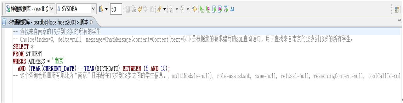 為進一步賦能企業(yè)高效利用數(shù)據(jù)資源,神通數(shù)據(jù)庫的DBStudio工具中引入了DeepSeek能力改寫了原有的AI智能補全功能,使用者能夠以對話的便捷方式,將自然語言無縫轉(zhuǎn)化為SQL及復雜查詢語句,這一功能徹底扭轉(zhuǎn)了以往數(shù)據(jù)庫交互依賴專業(yè)編碼的局面,升級為“全民對話”的模式,大大降低了企業(yè)數(shù)據(jù)驅(qū)動能力的技術(shù)門檻。