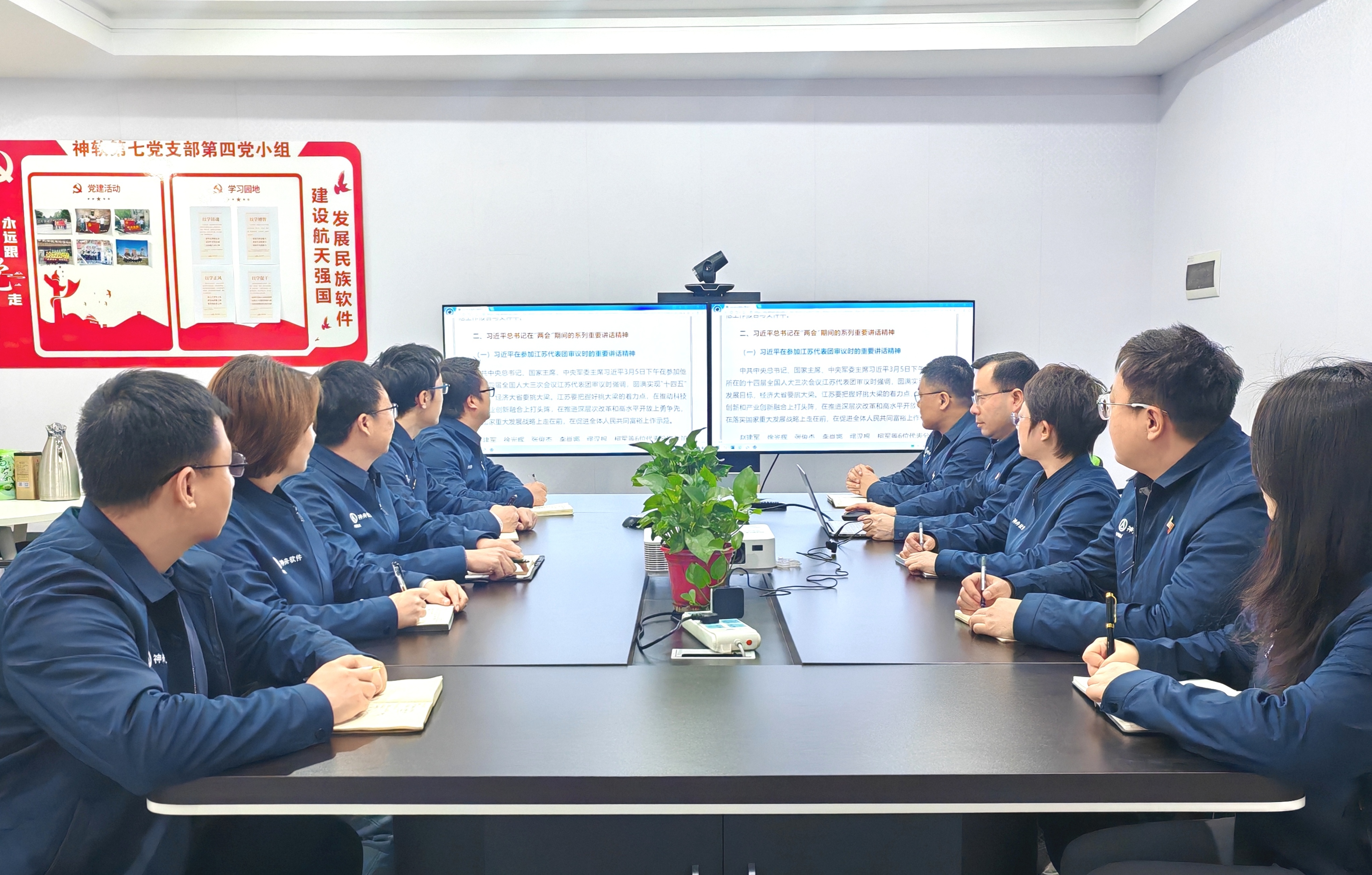 | 2025年全國(guó)兩會(huì)在北京勝利召開,這次會(huì)議聚焦科技創(chuàng)新、高質(zhì)量發(fā)展等領(lǐng)域提出了一系列新思路、新舉措。神軟公司組織各黨支部開展全國(guó)兩會(huì)精神學(xué)習(xí),深刻領(lǐng)會(huì)黨中央和習(xí)近平總書記治國(guó)理政新方略的思想精髓,把握政府工作報(bào)告中提出的重大戰(zhàn)略部署與關(guān)鍵政策導(dǎo)向,結(jié)合學(xué)習(xí)貫徹集團(tuán)公司第九次工作會(huì)議精神,引導(dǎo)全體黨員干部將會(huì)議精神轉(zhuǎn)化為推動(dòng)神軟公司高質(zhì)量發(fā)展的實(shí)際行動(dòng),為實(shí)現(xiàn)“十四五”規(guī)劃目標(biāo)任務(wù)圓滿收官注入強(qiáng)勁動(dòng)力。 AVIDM產(chǎn)品研發(fā)部黨支部 AVIDM產(chǎn)品研發(fā)部黨支部組織黨員們共同學(xué)習(xí)了習(xí)近平總書記在全國(guó)兩會(huì)期間的重要講話精神,并結(jié)合集團(tuán)公司第九次工作會(huì)關(guān)于系統(tǒng)重構(gòu)三大主業(yè)、重點(diǎn)重塑六大能力的部署要求,明確將科技創(chuàng)新、數(shù)字化轉(zhuǎn)型、產(chǎn)業(yè)鏈協(xié)同作為落實(shí)全國(guó)兩會(huì)精神的核心方向。黨支部認(rèn)為,要以“新質(zhì)生產(chǎn)力”培育為抓手,加速人工智能等信息技術(shù)在航天智能制造領(lǐng)域的創(chuàng)新應(yīng)用,推動(dòng)業(yè)務(wù)模式轉(zhuǎn)型升級(jí)?。